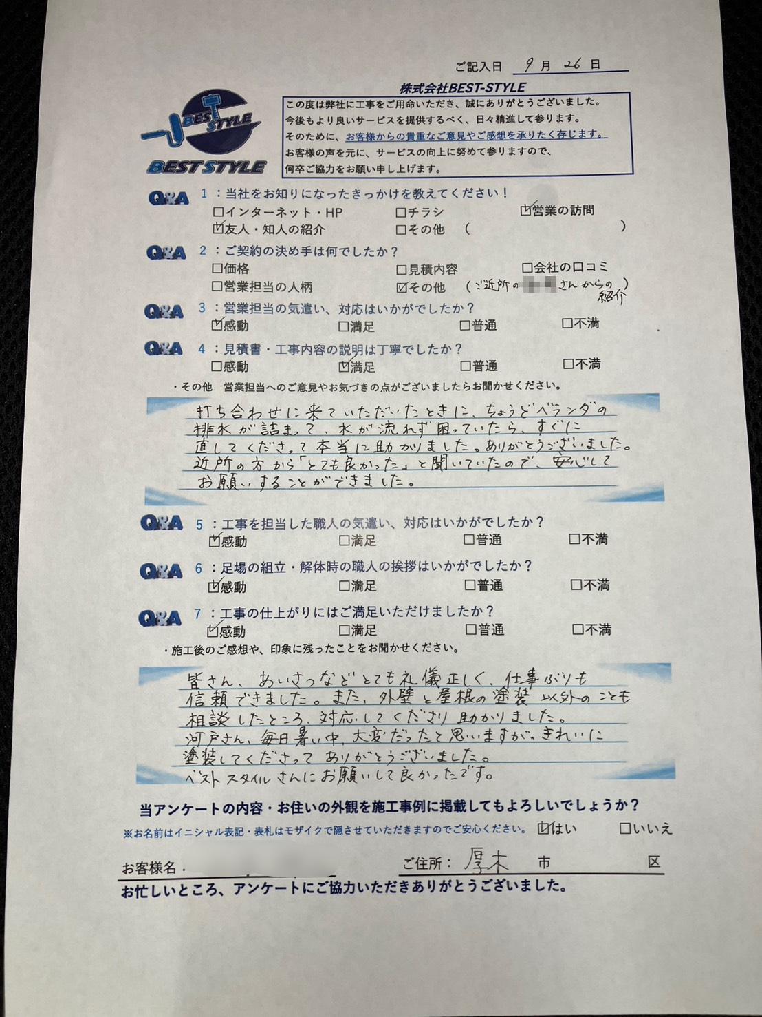 近所の方から「とても良かった」と聞いていたので、安心してお願いすることができました。
